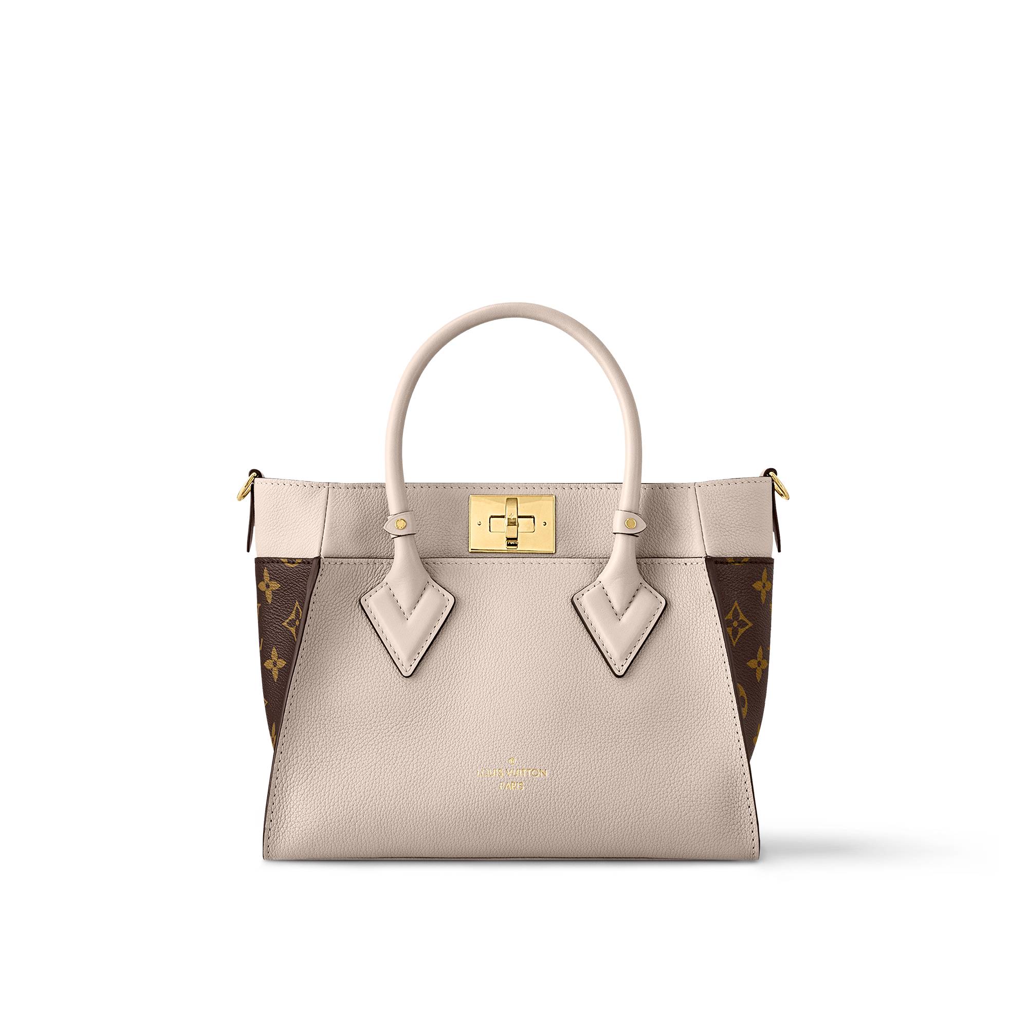 The On My Side MM tote bag is fashioned from an elegant combination of small-grained calf leather and emblematic Monogram canvas. The large outside pockets in contrasting canvas create a bag-in-a-bag look. The roomy interior can easily hold everything needed for a day at the office while the adjustable strap makes for practical cross-body carry.