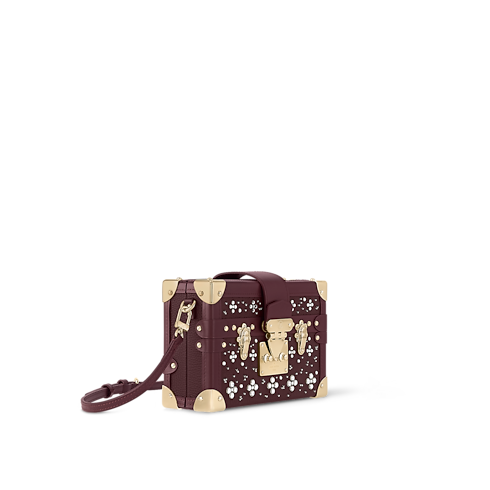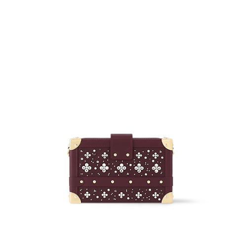 This precious edition of the Petite Malle handbag is impeccably crafted from Taurillon leather in a rich Bordeaux colorway. The stunning “little trunk” showcases pearl and crystal embroidery in a refined floral pattern borrowed from the iconic Monogram motif. A statement accessory, it will illuminate any evening ensemble with its festive sparkle.