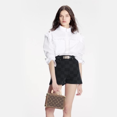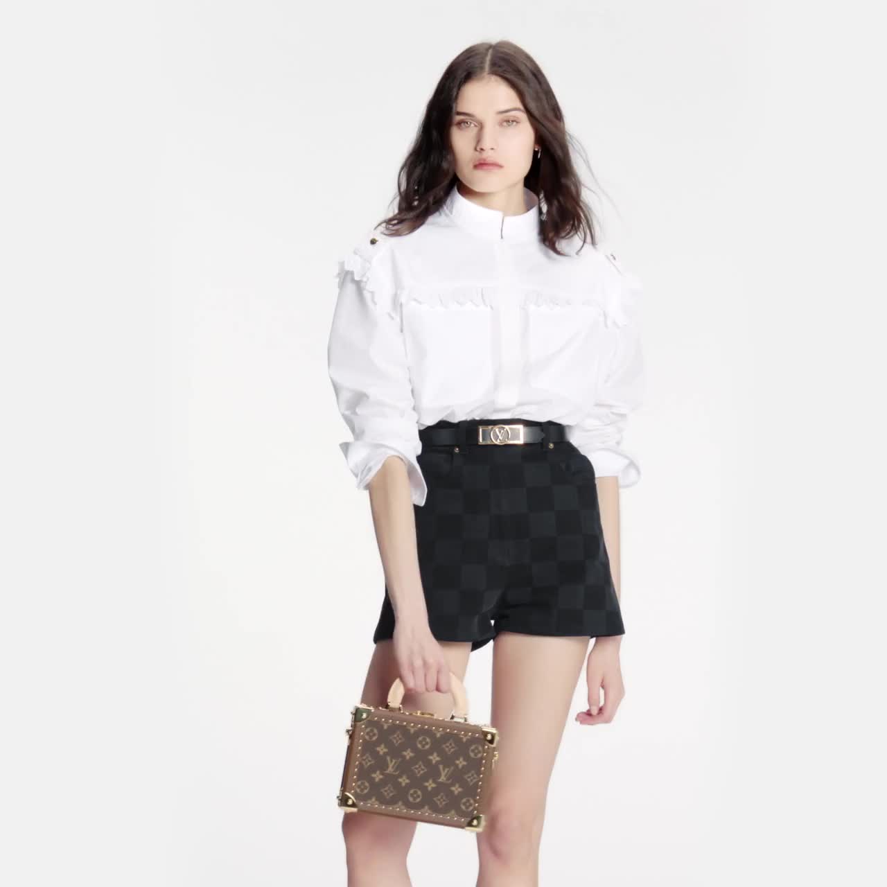 For Cruise 2022, Nicolas Ghesquière creates a new wearable Hardsided, the Petite Valise. Miniaturized version of emblematic Louis Vuitton suitcases, with the top handle, the Petite Valise is the feminine Hardsided must-have.
