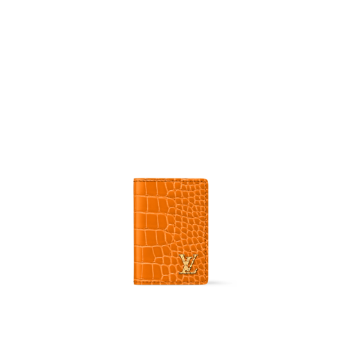 The Pocket Organizer compact wallet is made from crocodilian leather so soft and supple that Pharrell Williams named it “Butter Crocodile.” Vibrant color and textured scales pair with aged-gold-tone LV Initials, detailed with tiny studs. Compact enough for any pocket, this wallet is a refined and dependable everyday companion.