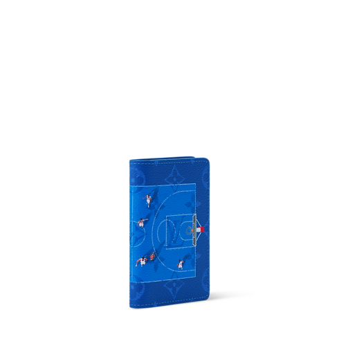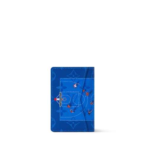 Fashioned from rich blue Monogram coated canvas, this Pocket Organizer compact wallet features a playful aerial view of basketball players in motion. Small yet functional, it includes three card slots and five interior pockets, plus a flat pocket on the back, offering everyday utility in a bold, sport-inspired design.