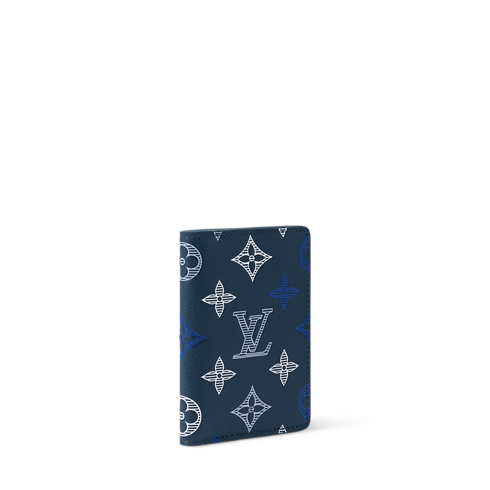 The Pocket Organizer compact wallet takes on a sporty feel in Monogram Shadow calfskin leather. The leather is embellished with a Monogram pattern featuring a gradient effect, created through a triple serigraphy technique. This pocket sized wallet is lined in cowhide leather and features three card slots, five inside pockets, and an outside pocket on the back.