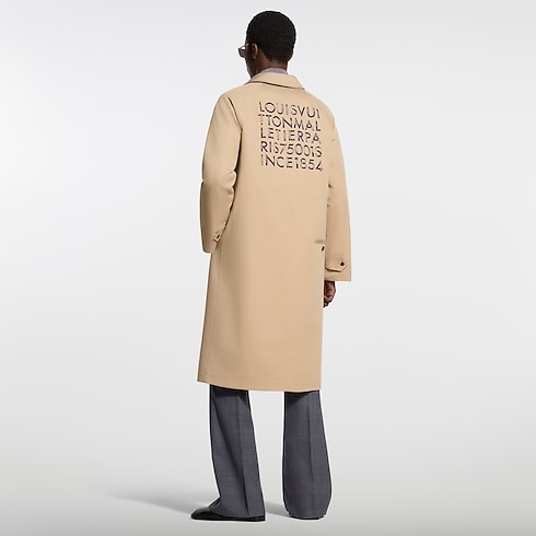 This light, reversible cotton-silk trench coat can be styled many ways. The classic beige exterior contrasts an elegantly understated front with this season’s graphic LV Alphabet lettering on the back. Reversed, it reveals a gray glen check jacquard, accented with a discreet embroidered signature on the chest. The pared-down silhouette is perfect for a transeasonal wardrobe.