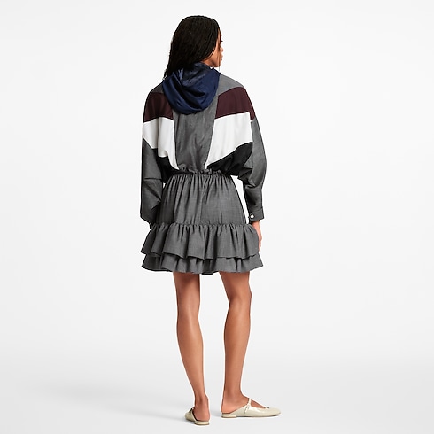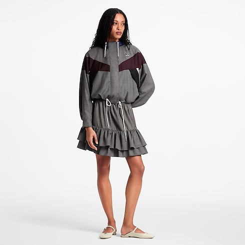 This mini skirt plays with smart and casual codes in elegant tailoring wool. Tiers of ruffles add playful volume to the hem, while a sporty drawstring cinches the waistline. A metallic LV Twist signature completes the look with a sleek House touch.