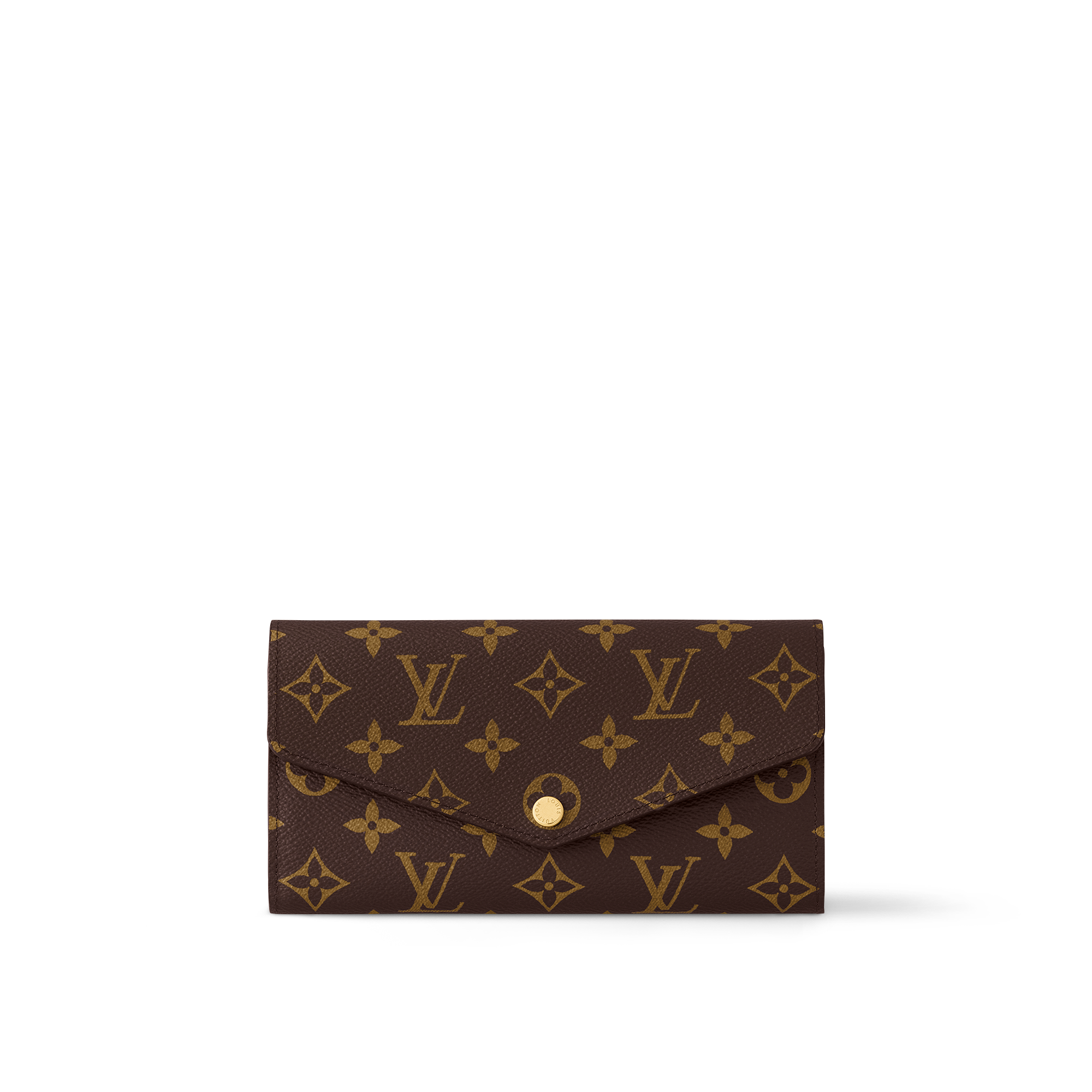 Damier Azur canvas brings a fresh look to Louis Vuitton's Sarah wallet, a timeless model with a simple, elegant exterior and a well-organized interior. Its envelope-style flap, which is secured with a gold-tone press-stud, opens to reveal two large compartments, multiple card slots and a zipped coin pocket.