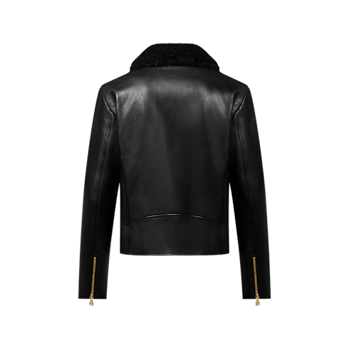 This elegant take on the biker jacket provides warmth and sophistication for colder days. The slim, slightly cropped silhouette has a pared-down aesthetic that sets off the luxurious black shearling collar. An embroidered tone-on-tone LV Ribbon motif on the supple calf leather body adds a discreet signature touch.