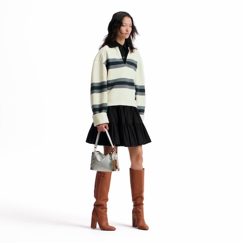 Introducing the Minigram Bold signature, which decorates this chic edition of the Side Trunk MM. The subtle pattern is debossed onto calfskin leather and accented with gold-toned hardware, including trunk details that pay tribute to the House’s iconic heritage. Note the contrasting Monogram charm, which depicts the original show invitation from Nicolas Ghesquière’s debut collection – this exclusive envelope is designed to slot a card inside if desired.
