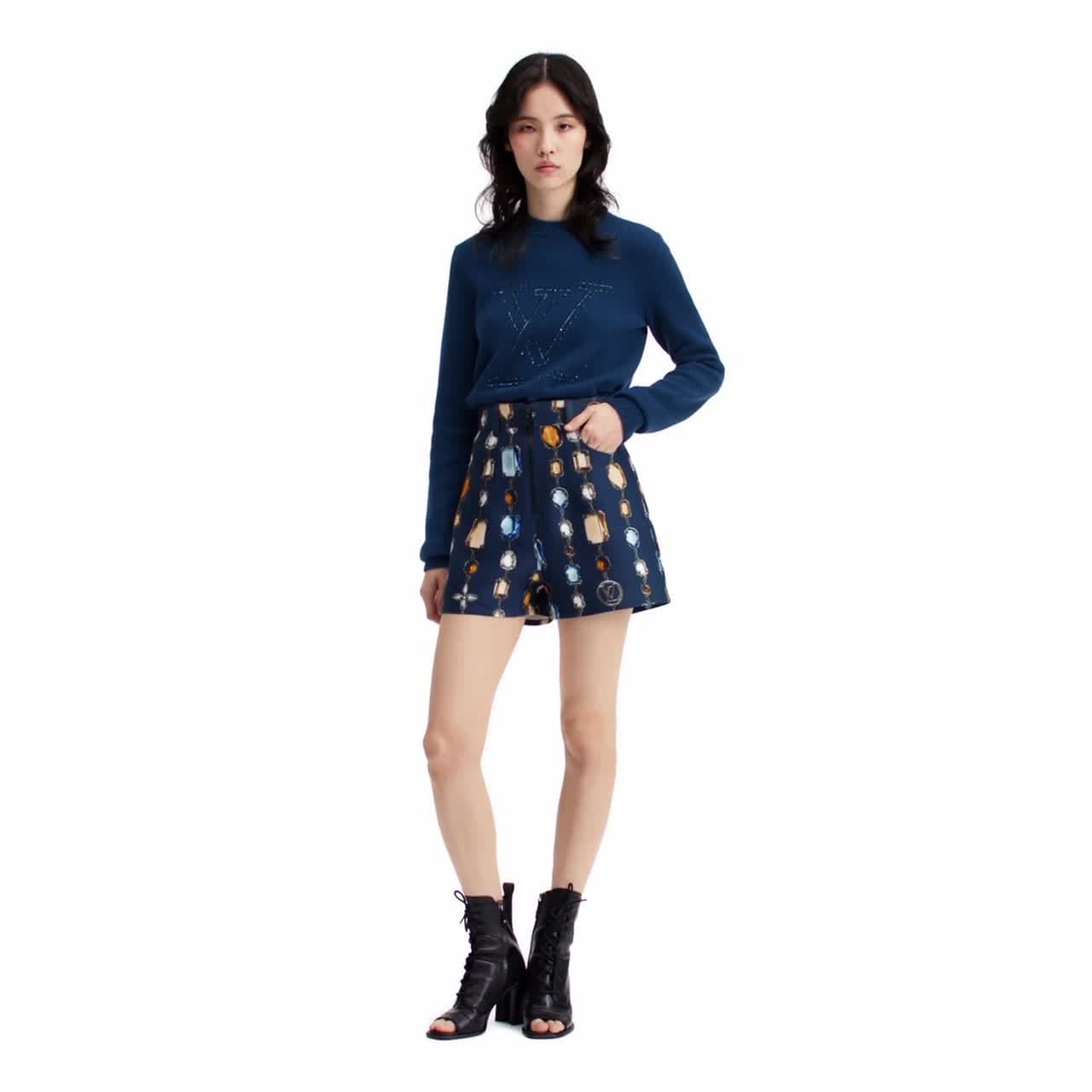 This pullover is effortlessly elegant in a sumptuous cashmere knit in a timeless shade. The shape is casual and comfortable for versatile styling, complete with a crew neckline and neat ribbed hems. The chest is signed with scaled-up LV Initials in tone-on-tone sequins for a shimmering signature finish.