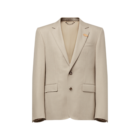 This elegant heathered beige single-breasted jacket is tailored with a straighter Gaston fit for comfort. It is crafted from an exclusive blend of cashmere and silk with an exceptionally soft touch. Sartorial details include LV stitching on the first button and pick-stitched accents, while a VVN leather tab signs the lapel. Matching pants make a luxurious lightweight suit.