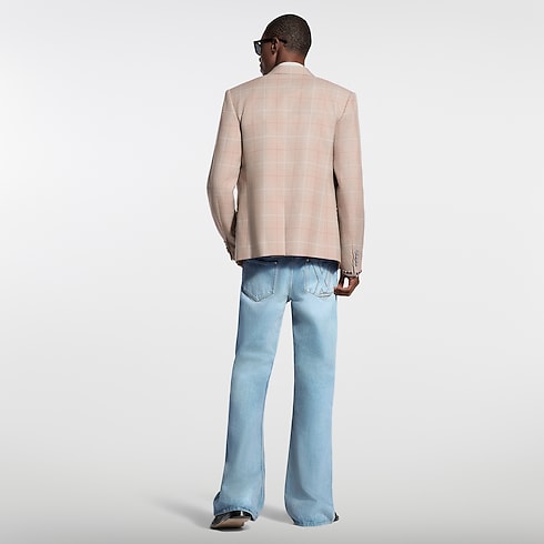 This single-breasted wool jacket from the Spring-Summer 2026 runway exemplifies this season’s Indian Dandy aesthetic. Tailored in elegant camel-colored glen check, it is adorned with embroidered beads resembling jewelry on the flap pockets and cuffs, while discreet Louis Vuitton Paris embroidery signs the left pocket. Pair with matching pants for a sophisticated twist on the suit.