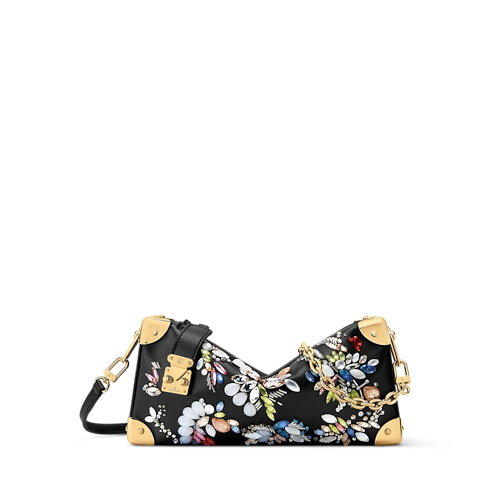 The Eden Embroideries collection presents this striking edition of the Slim Trunk, which is adorned with multicolor gems and crystals. Made from calfskin in classic Black, it is trimmed with cowhide and elevated with gold-toned trunk corners and a signature S-lock and chain. An elegant choice for evening occasions, it can be styled with or without the longer strap.