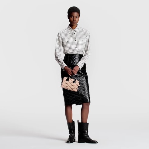 This finely crafted edition of the Speedy 20 Bandoulière handbag is fashioned from luxe beige lambskin, embellished with the House’s iconic Malletage pattern in contrasting deep red. In addition to its Toron top handles, this model is fitted with a removable chain-and-leather strap, for enhanced versatility. The double zip closure is ornamented with a signature golden padlock.