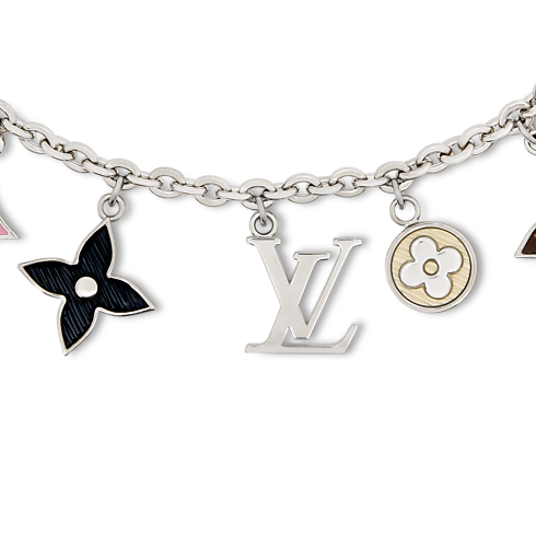 The iconic Spring Street bag chain gets an on-trend update with this version crafted in palladium-colored metal. Easy to attach with its dual snap hooks, it showcases the House’s emblematic LV Initials and Monogram Flowers enhanced with a variety of finishes. This versatile, eye-catching charm brings a touch of timeless elegance to any handbag.