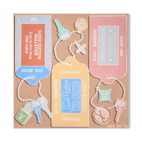 The all-silk Tag And Go square is a creative tribute to the House’s heritage and devotion to the art of travel. Its sophisticated double-face print combines luggage tags from the archives with keys recalling the innovative trunk locks invented by Louis Vuitton himself. Perfect for adding a touch of color and signature elegance to any outfit.