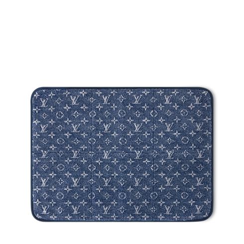 The foldable travel dog carpet offers an appealing place for dogs to repose. Embellished with a print of the Monogram Flowers, the blue fleece side evokes the appearance of denim faded by time, complemented by a navy cotton back. A tan leather label noting the House name playfully includes a paw print.