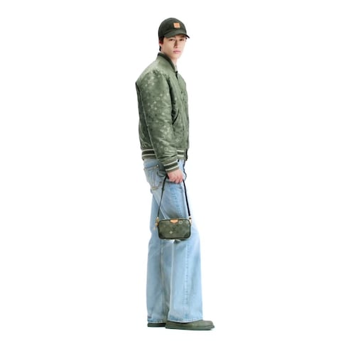 The Trocadéro Wearable Wallet is made from Monogram Surplus coated canvas with khaki green leather trim. Pharrell Williams gives the classic Monogram a camouflage twist, with Monogram Flowers and LVs in varied green tones. Lined in matching cotton, it features a removable, adjustable strap for versatile carry.