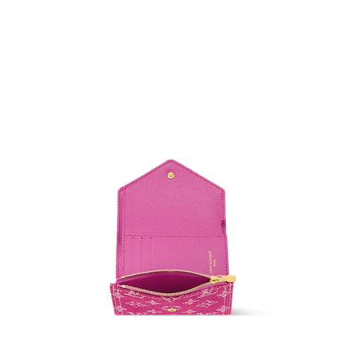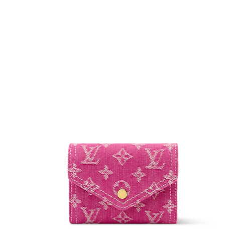The Victorine Wallet gets a seasonal update in a striking Fuchsia colorway, elevated with the House’s signature Monogram. It is crafted from denim for a modern feel and is adorned with a gold-toned snap button. While petite in size, the functional accessory has a dedicated space for bills, plus two flat pockets and six card slots.