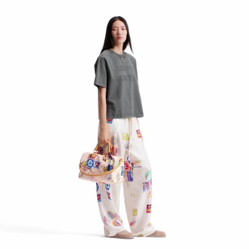 This T-shirt has effortless everyday appeal in thick cotton jersey cut in a casual boxy fit. An overdyed finish introduces a vintage vibe, which is underscored by the large faded-effect Louis Vuitton signature on the chest. An LV chain embellishment adds a chic House touch to the neckline.