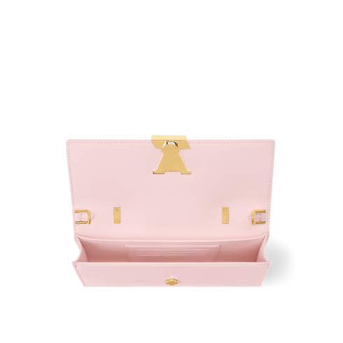 The Why Knot collection presents this Sweet Pink edition of the iconic Wallet On Chain Capucines. It is made from calfskin embellished with a gold-toned chain and signature LV Initials, paying tribute to the House’s quality craftsmanship and heritage. The compact design is sized to fit daily essentials and includes a flat pocket inside with three slots to store cards.