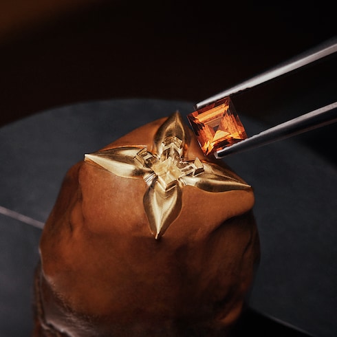 Embodying a precious variation of the Montgolfière Aéro, this eight-piece limited edition unveils a fusion of distinguished High Watchmaking, High Jewellery, and trunkmaking savoir-faire. In a whimsical reinterpretation of Louis Vuitton's iconic heritage, this state-of-the-art horological object is encrusted with rare stones as a result of meticulous gem-setting techniques and features a miniature trunk in Macassar wood.