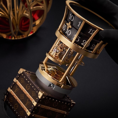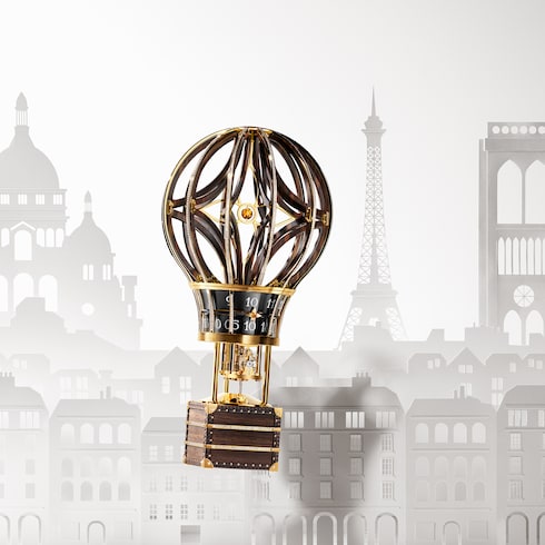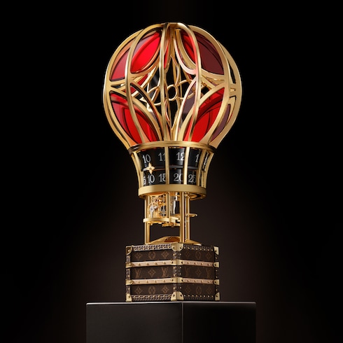 Louis Vuitton's trail-blazing creativity takes flight with two one-of-a-kind hot-air balloon horological objects. In a continuation of watchmaking excellence, these unique creations harness the Maison's spirit of adventure and discovery while breaking the boundaries of traditional clock-making.
