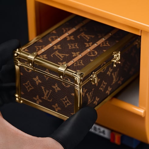 An invitation to dream, the Montgolfière Aéro in timeless red and transparent glass pays homage to the hot-air balloon that has inspired the Maison's campaigns and creations throughout history. Resting on a basket, evoking one of the smallest traditional Louis Vuitton trunks ever created, the piece is complete with iconic Monogram canvas and signature design codes.