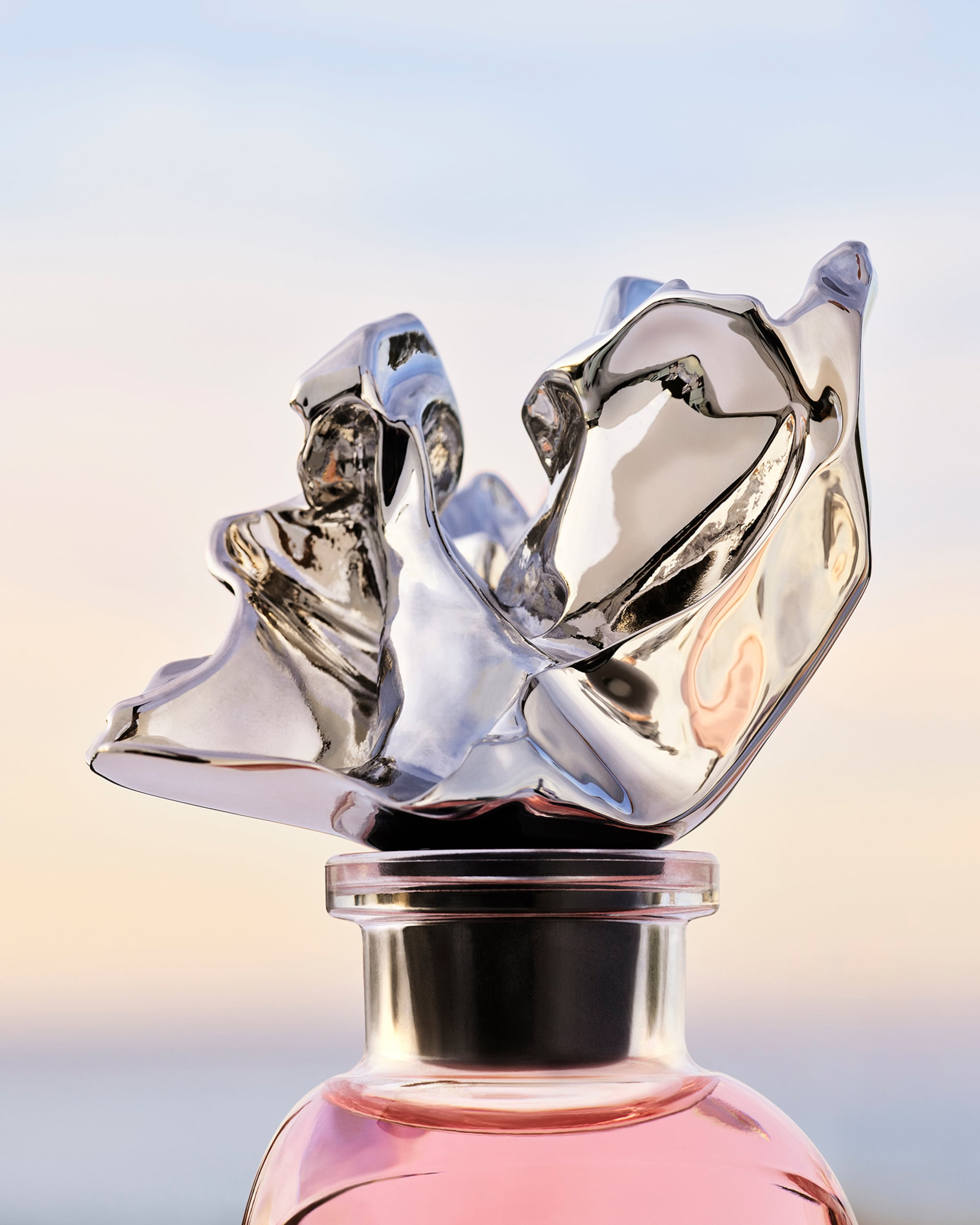 I wanted to approach the project from a sculptural point of view. To bring something different to perfume. It’s not a finished geometric form, it’s just movement. Visual movement with the added interest of ephemerality.