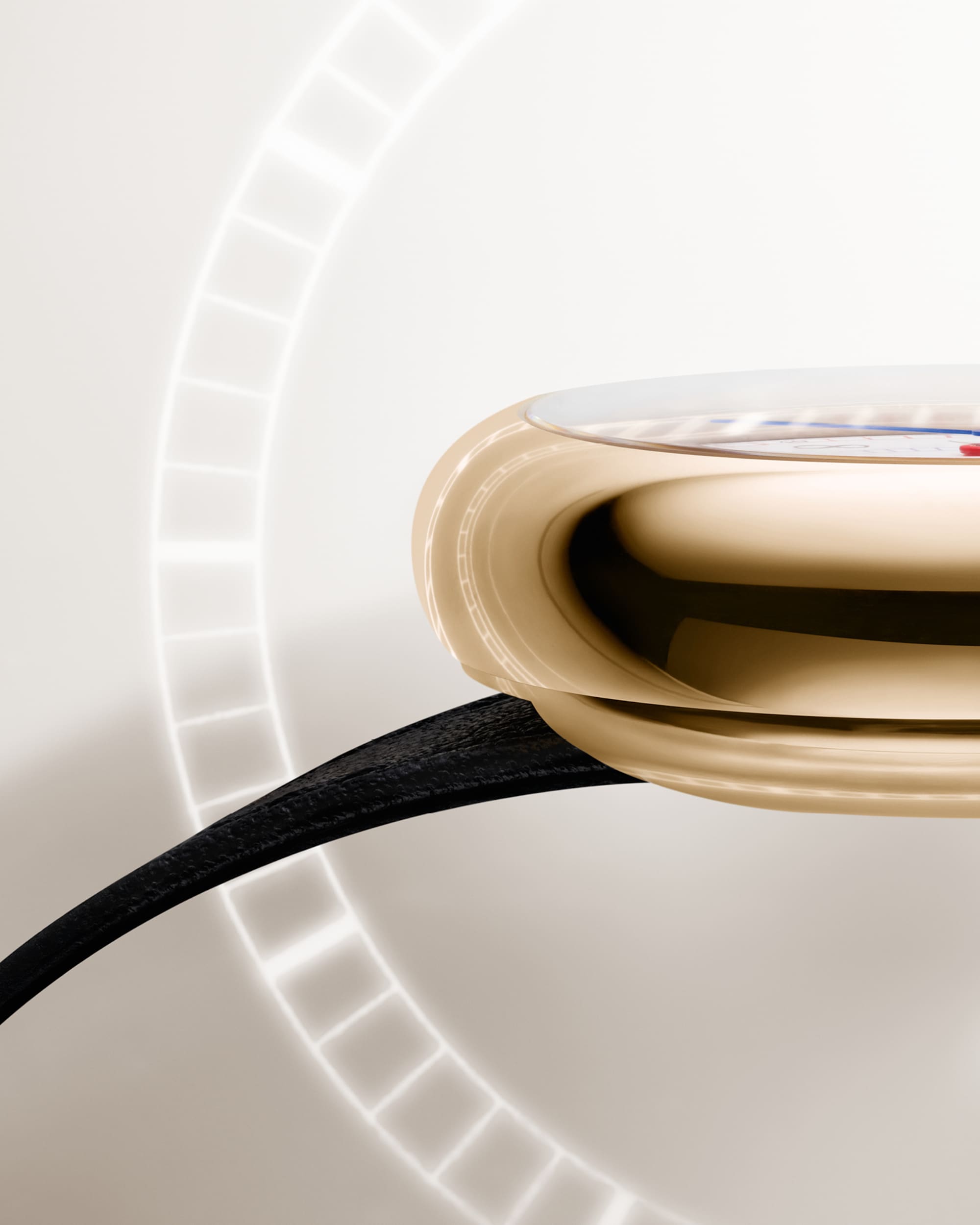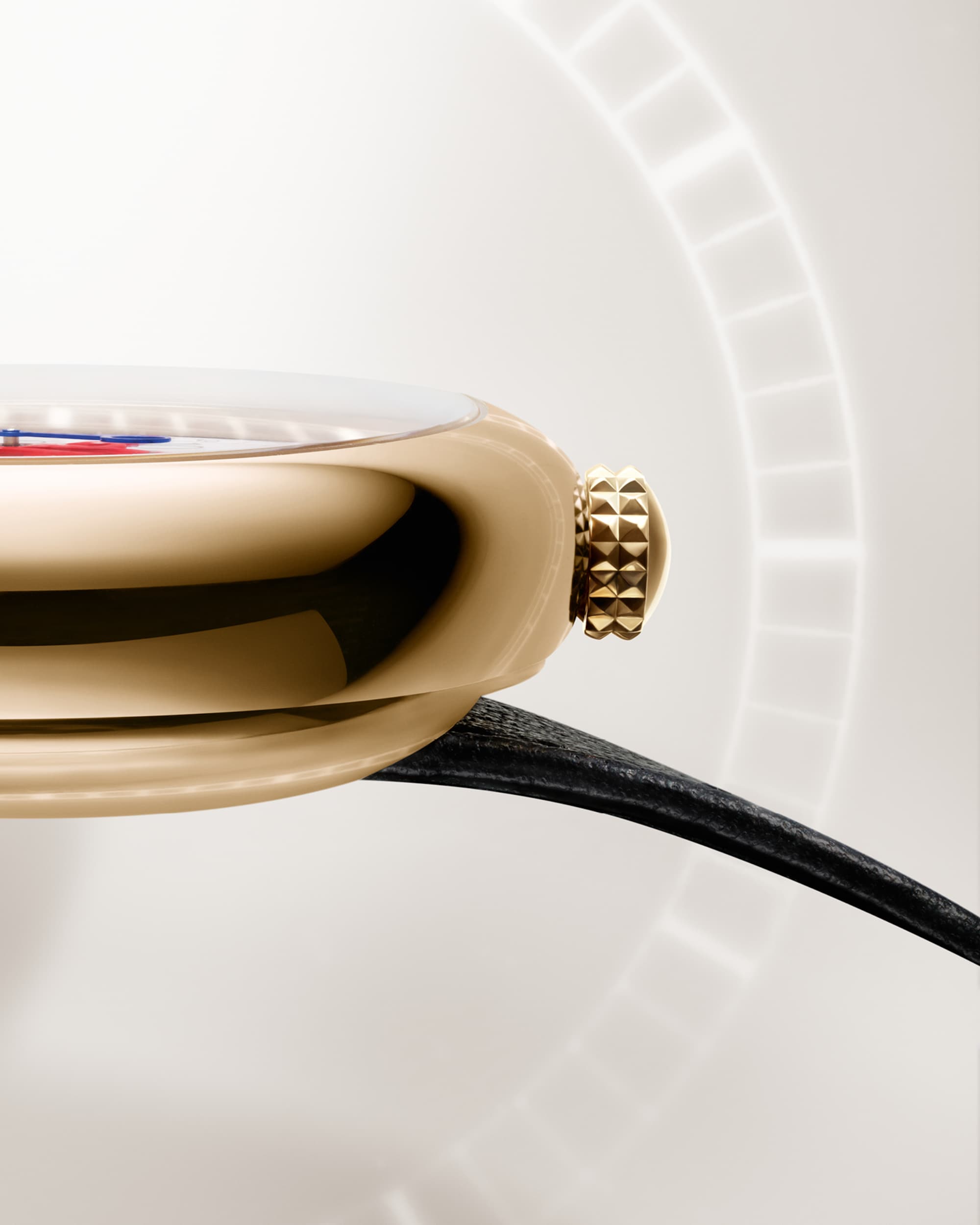 Featuring a 39mm yellow-gold pebble shaped case paired with a glossy Grand Feu enamel dial, the watch carries the past into the present through railway-track hours and minutes, highlighted by vivid red and blue accents.