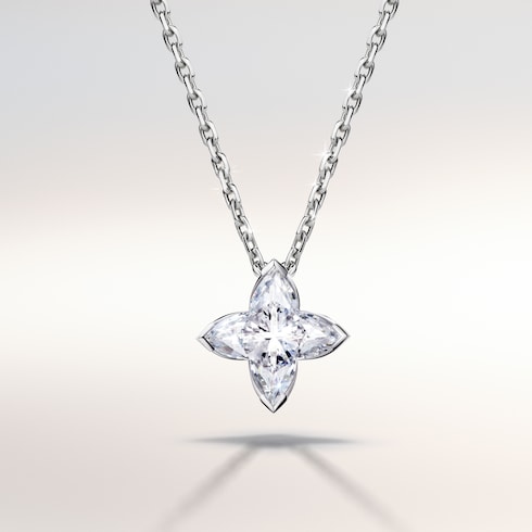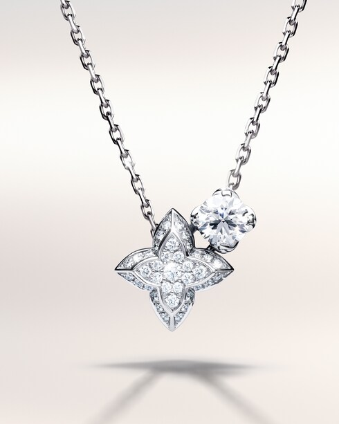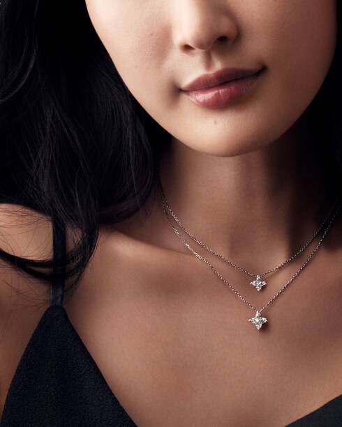 The LV Diamonds pendants and earrings celebrate life’s most precious moments. Inspired by the iconic Monogram Flower, each piece is brought to light through the signature LV Monogram Star cut diamond — its singular radiance capturing the depth of every emotion.