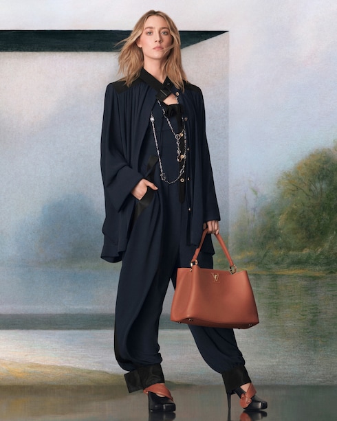 Unfurling a wardrobe balancing softness and structure, Nicolas Ghesquière's Women’s Spring-Summer 2025 Collection reveals a paradoxical sensibility, with House Ambassadors Lisa and Saoirse Ronan depicted as modern portraits within paintings by Laurent Grasso.