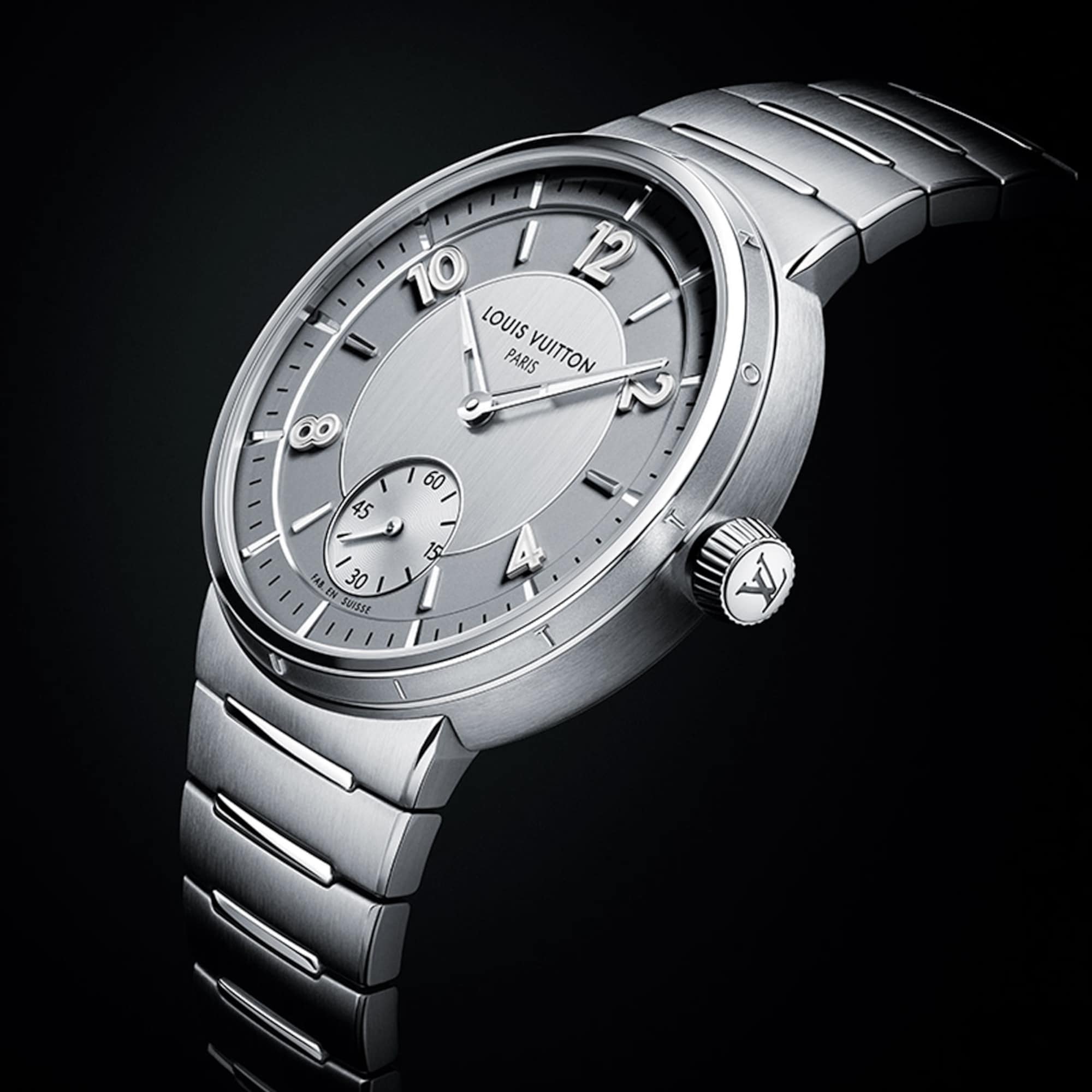In a fusion of Swiss craftsmanship and the Maison's heritage Parisian flair, the latest iteration of the Tambour is adorned with a symbolic new double signature on its dial: Louis Vuitton Paris and Fab. en Suisse.