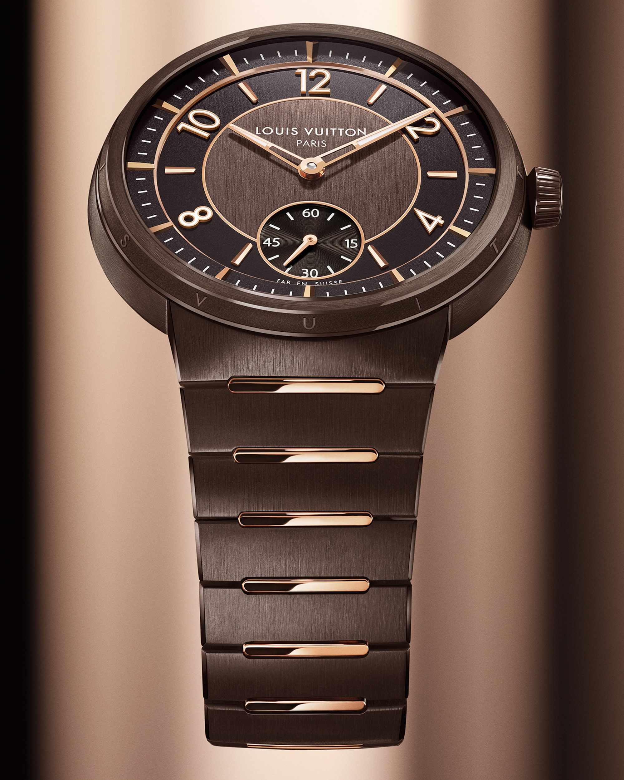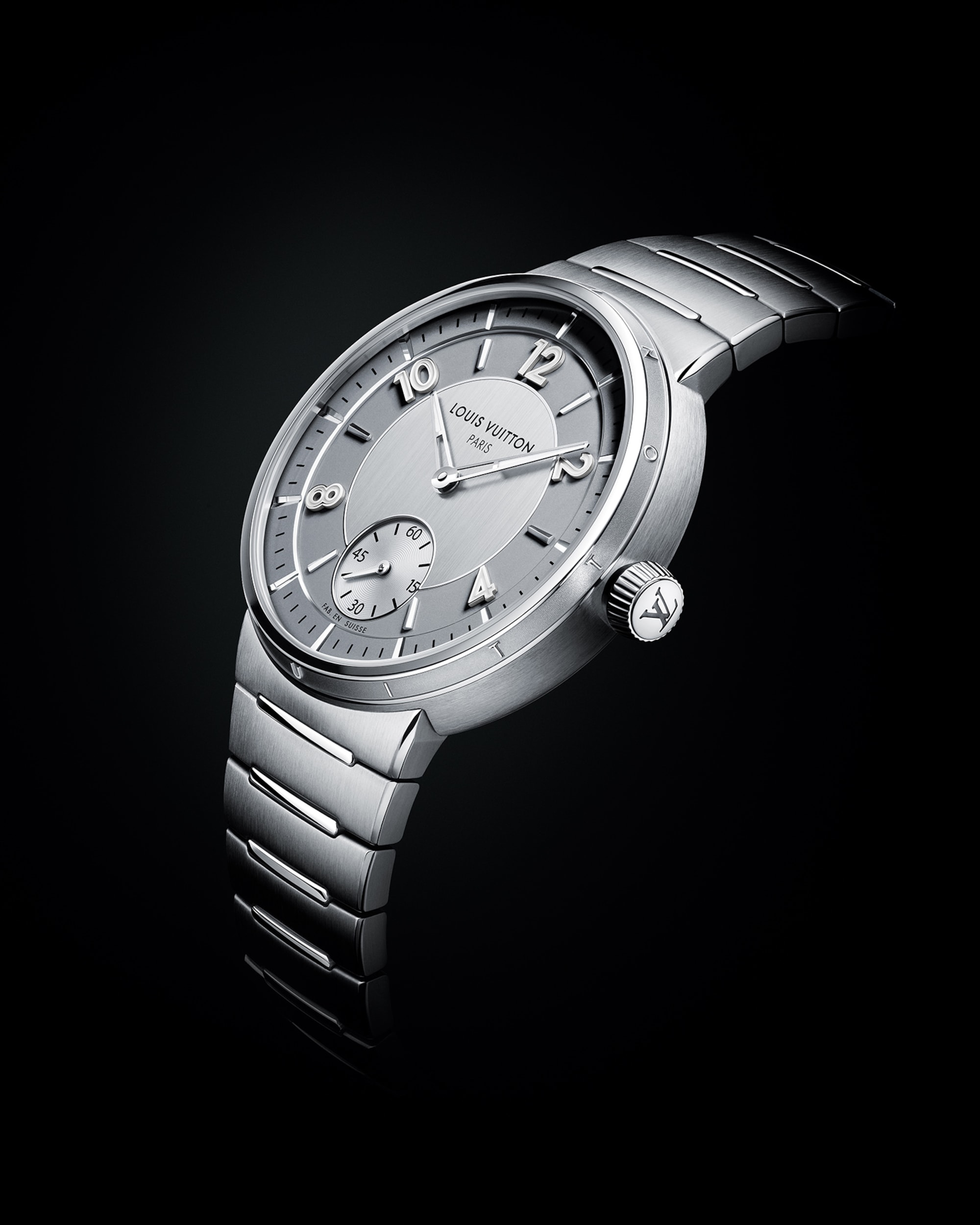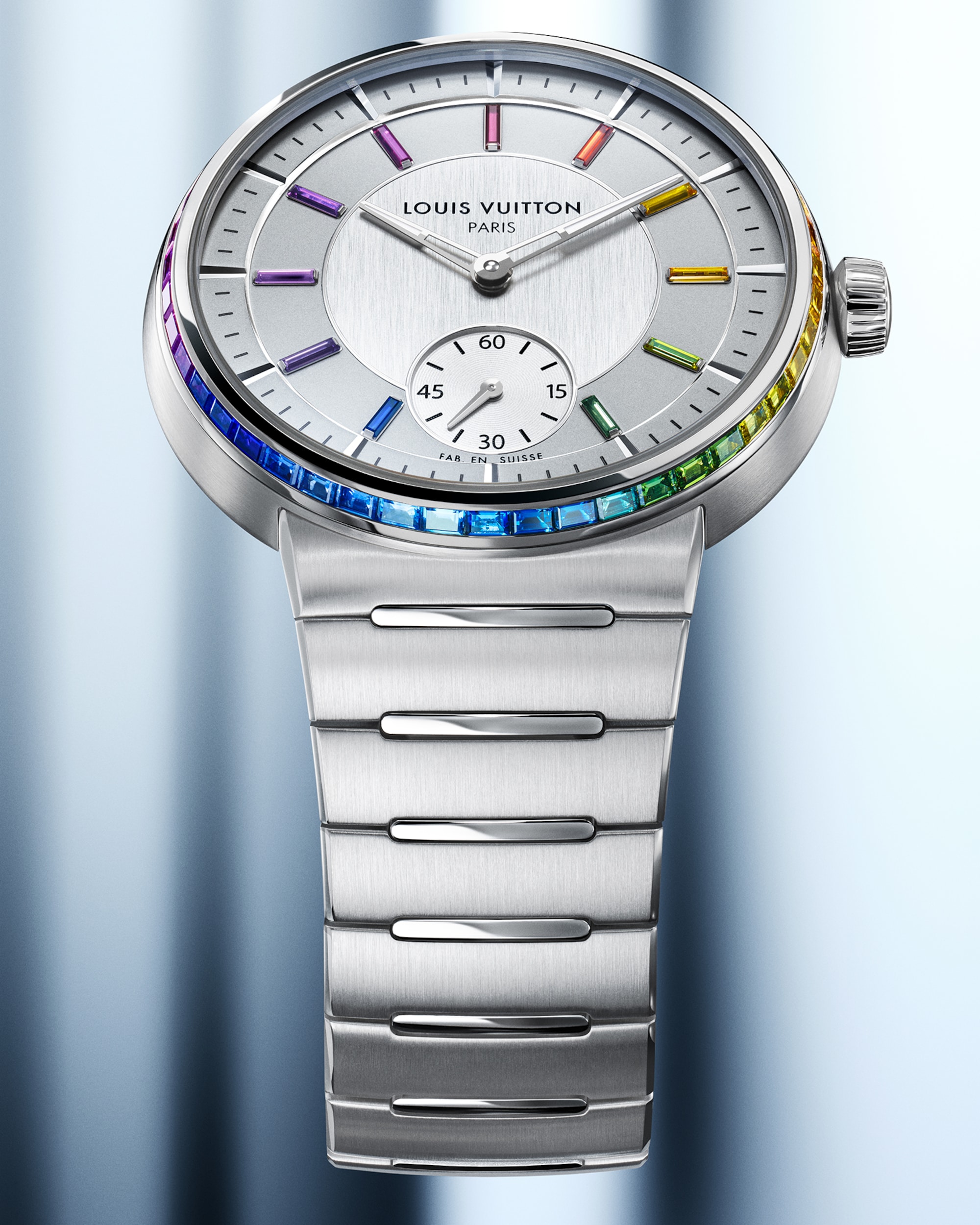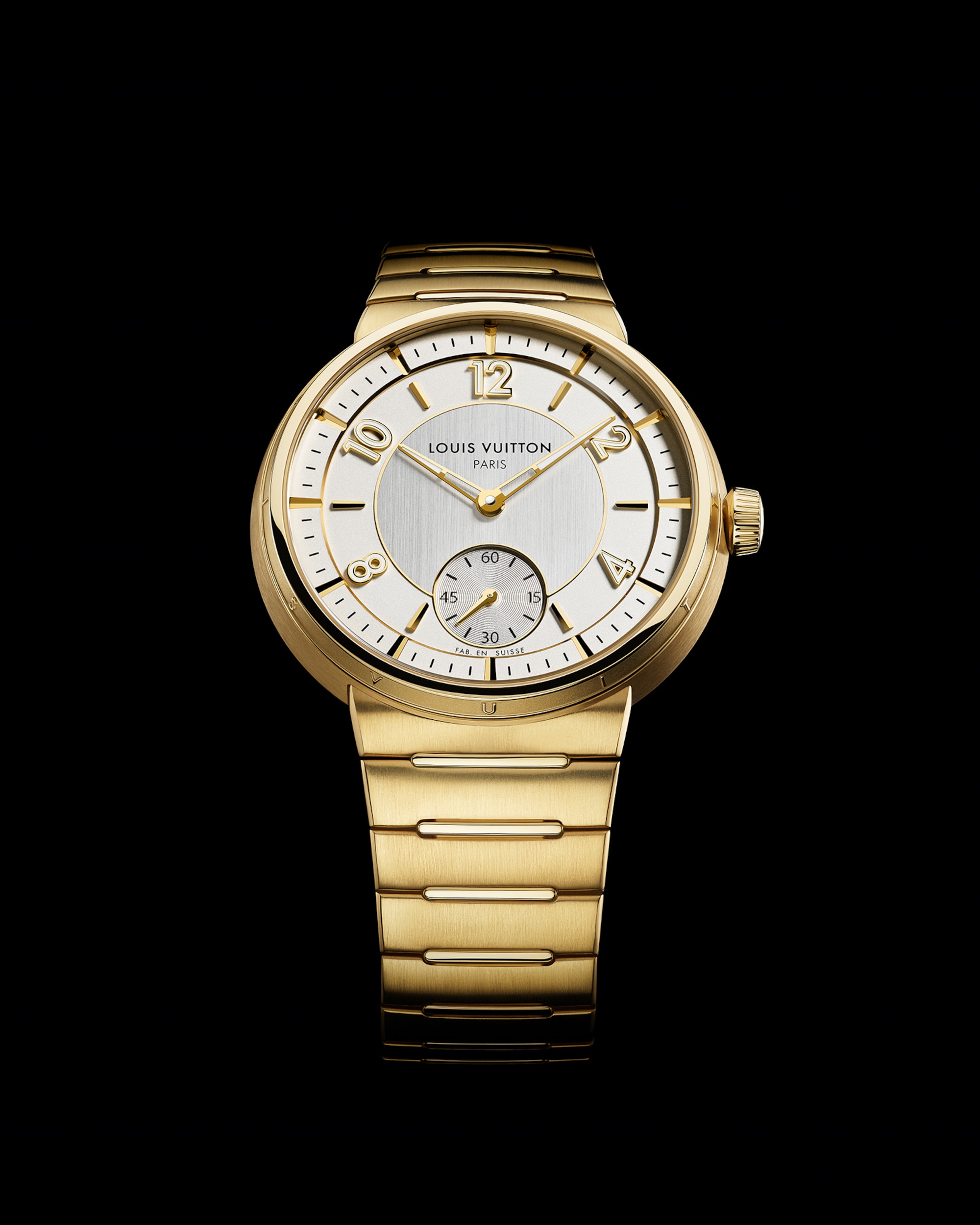 Embellished with contrasting finishes, the unisex timepiece features Louis Vuitton’s first integrated bracelet, which blends seamlessly into the slim case – offering comfort and fluidity through its curved lines.