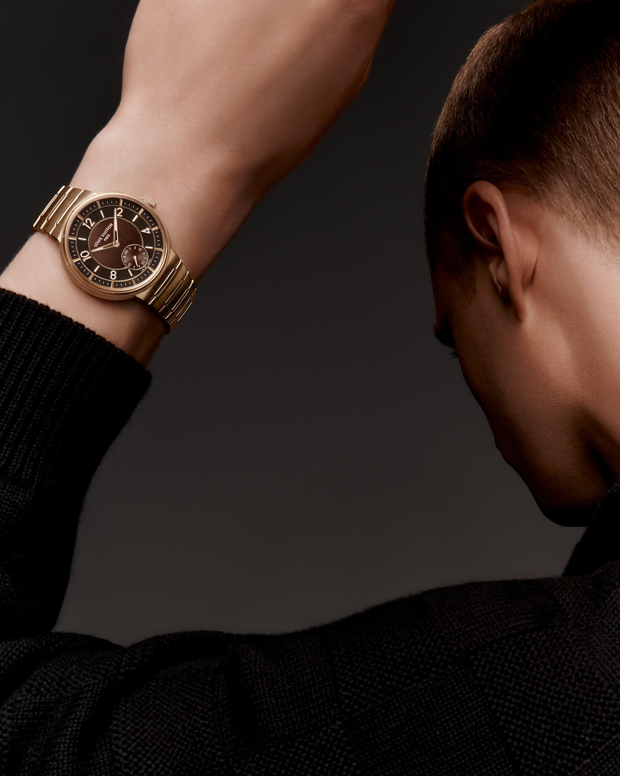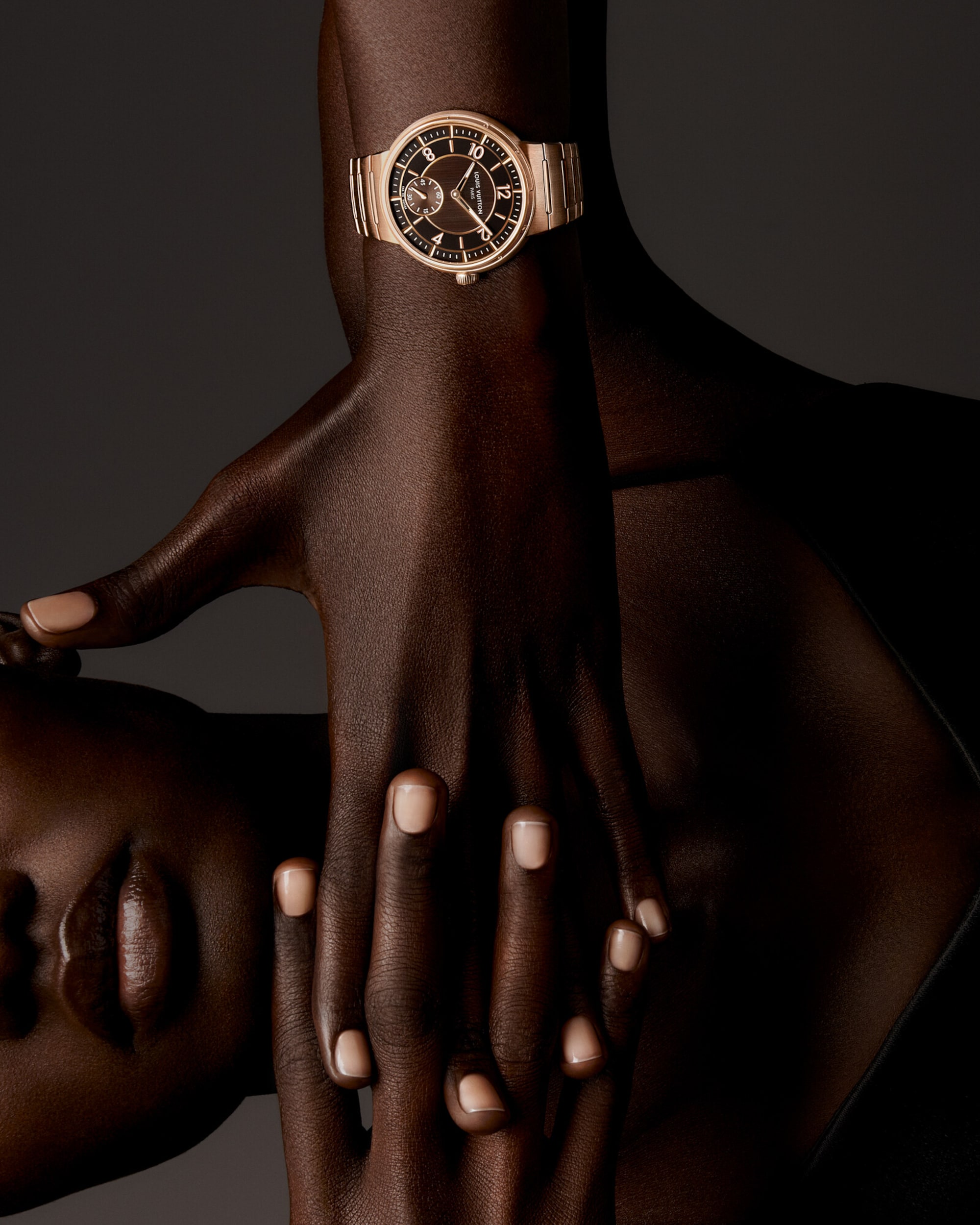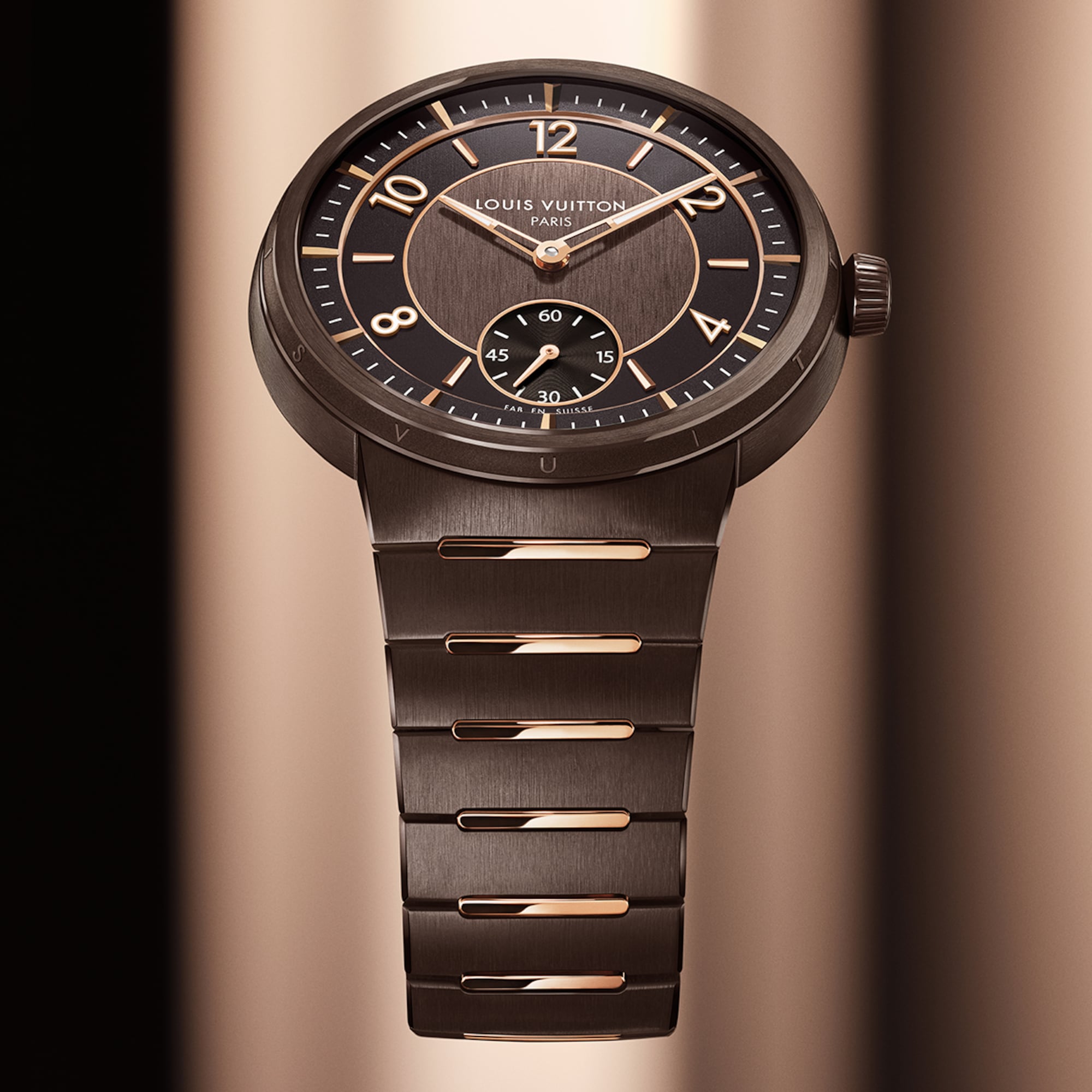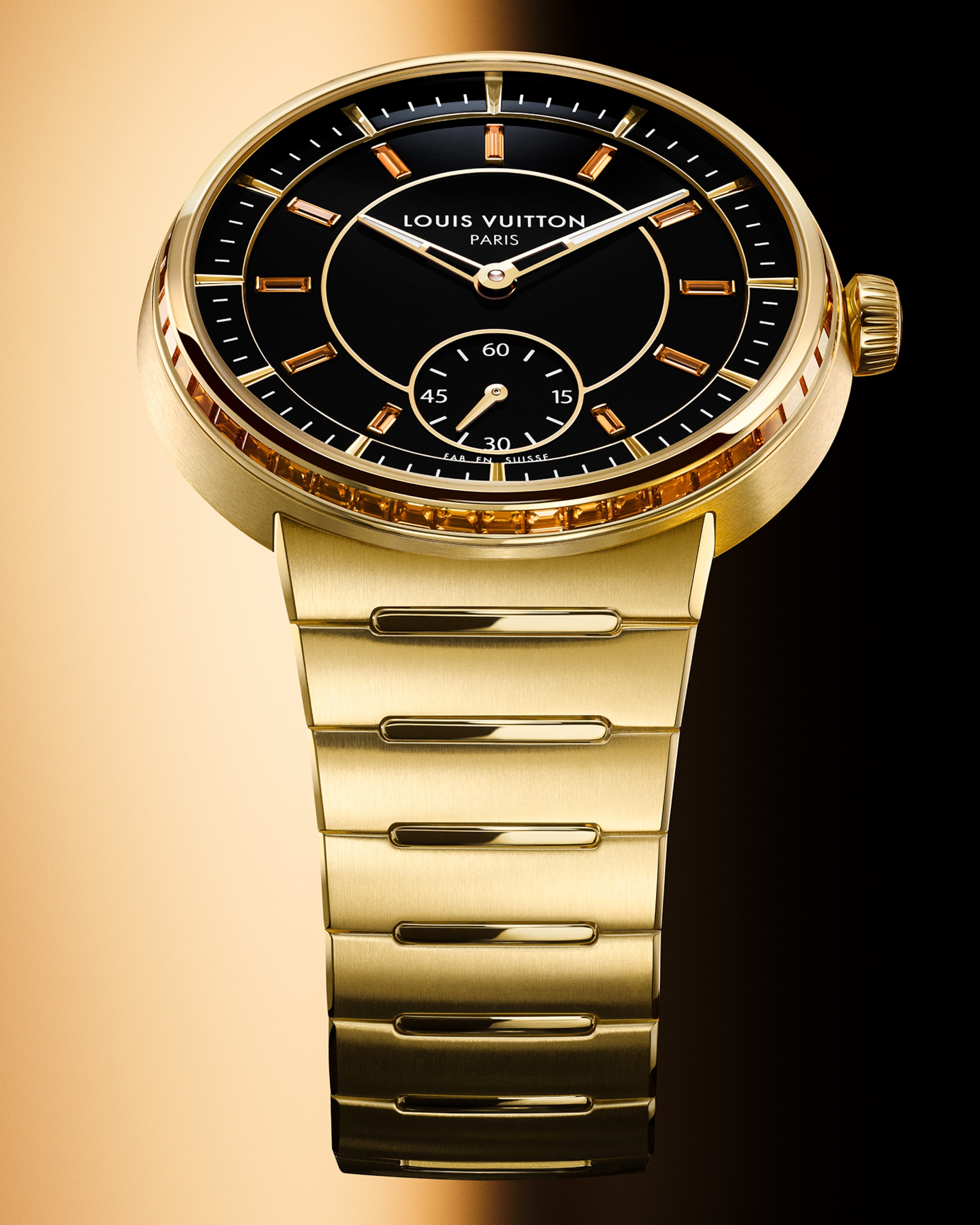 Embellished with contrasting finishes, the unisex timepiece features Louis Vuitton’s first integrated bracelet, which blends seamlessly into the slim case – offering comfort and fluidity through its curved lines.