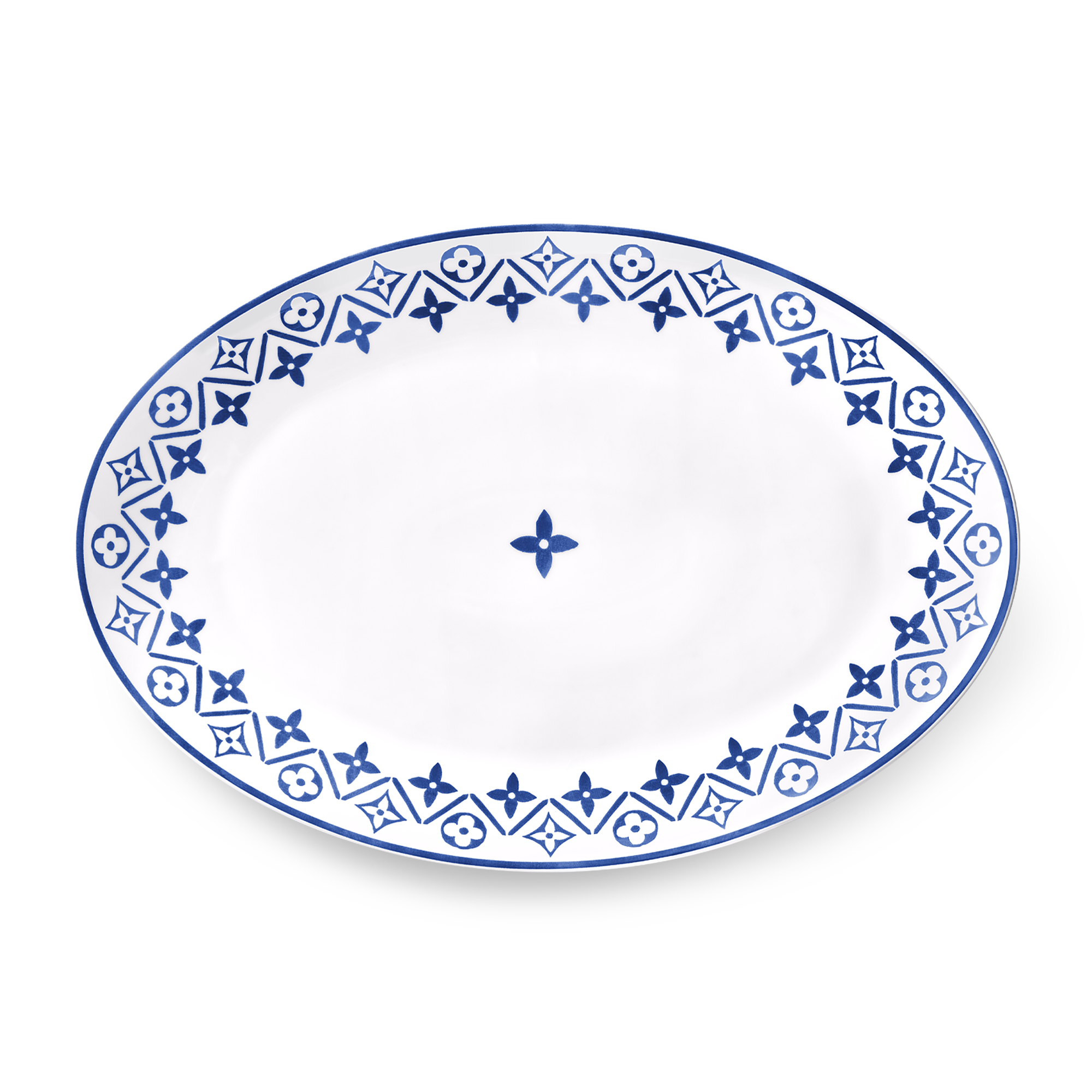 Set Of 2 Dinner Plates Monogram Flower Tile