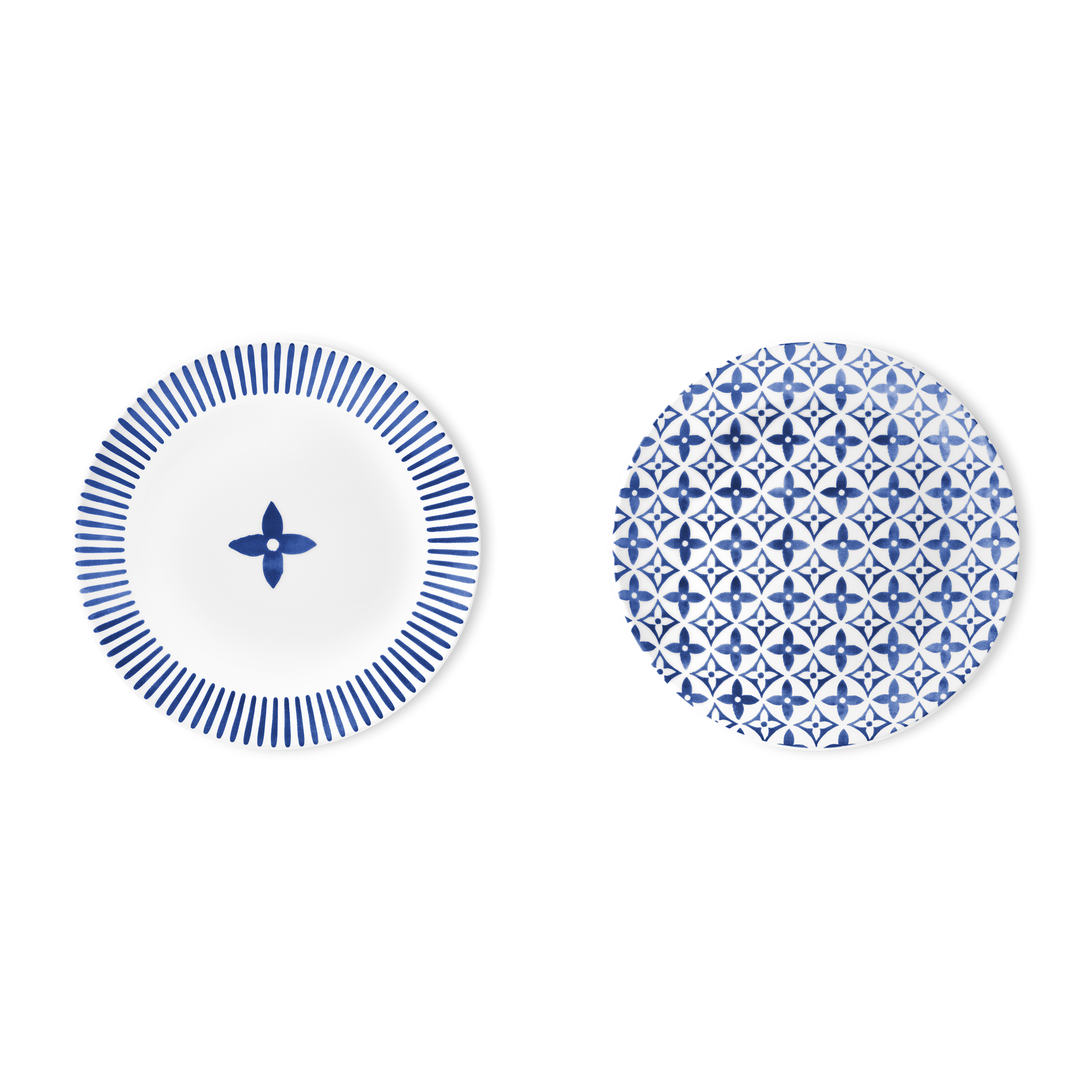 Set Of 2 Dessert Plates Monogram Flower Tile