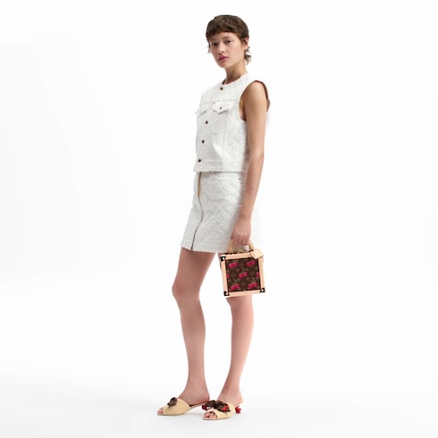 Mini Square trunk ini menampilkan detail ikonis Rumah Mode dalam sentuhan ceria, melalui paduan antara Monogram coated canvas yang klasik dengan motif buah cherry bergaya kawaii dari edisi kedua Louis Vuitton x Takashi Murakami collection. Bagian tepiannya berhiaskan trimming dari bahan natural leather, sementara aksen hardware bernuansa keemasan terlihat pada rivet di bagian sudut. Tas ini dapat dibawa menggunakan handle bagian atas yang bermodel melengkung maupun tali yang dapat dilepas.