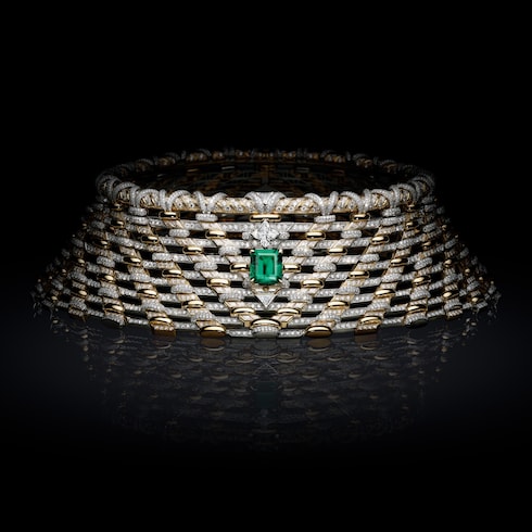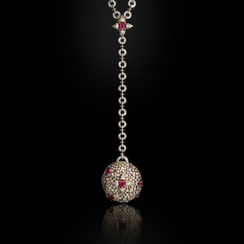 Mengemulasikan kontur ornamen interior imperial, Splendeur menghadirkan imaji floral woodwork dalam sebuah tribut bagi Monogram Flower ikonis. Ditata dengan lebih dari 110 batu ruby, perhiasan istimewa ini memancarkan aura karismatik - dirancang spektakuler, di antara batu permata berukuran besar yang pernah ditampilkan dalam sebuah perhiasan.