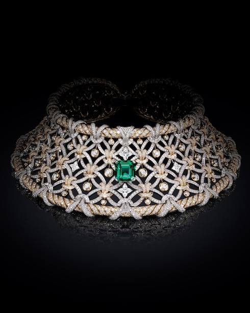 Séduction menampilkan kompleksitas unik, merayakan perkembangan tekstil dan keahlian ornamental pada periode tersebut. Detail presisi seperti bentuk V, cord-style fringing, dan corak Monogram Kite mengingatkan akan gaya historis Rumah Mode, menghasilkan salah satu koleksi perhiasan yang paling eksklusif — bertatahkan sebuah batu Zambian emerald 12,92 karat, membutuhkan waktu produksi selama 4.200 jam kerja.