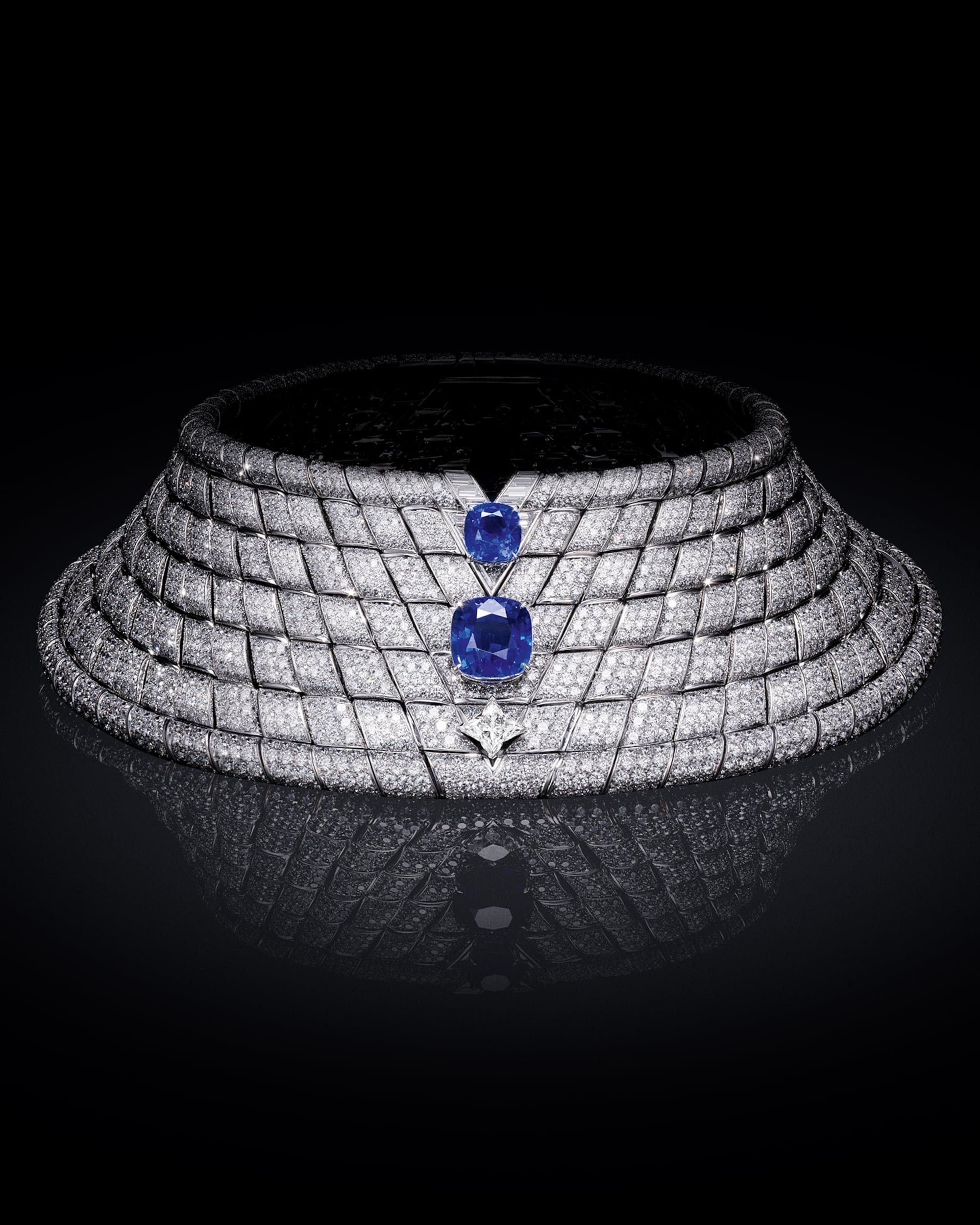 Merupakan wujud spirit of travel Louis Vuitton, Vision terinspirasi dari ekspansi jalur kereta api, serta kemunculan rasa kebebasan dan penemuan. Link berbentuk V yang saling bertautan mengingatkan akan desain trunk Rumah Mode — membentuk sebuah perhiasan yang memeluk area leher, diperindah dengan bebatuan golden yellow sapphires.