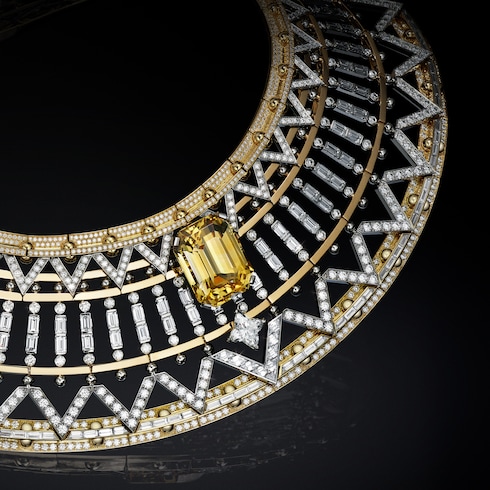 Savoir-faire ala Prancis terpancar dalam Victoire, sebuah tribut luar biasa untuk keterampilan dan arsitektur. Memiliki fitur kalung berlapis yang berhiaskan 25 berlian berwarna kuning, membentuk V nan ikonis khas Louis Vuitton, merepresentasikan warisan keterampilan dan elegansi modern.